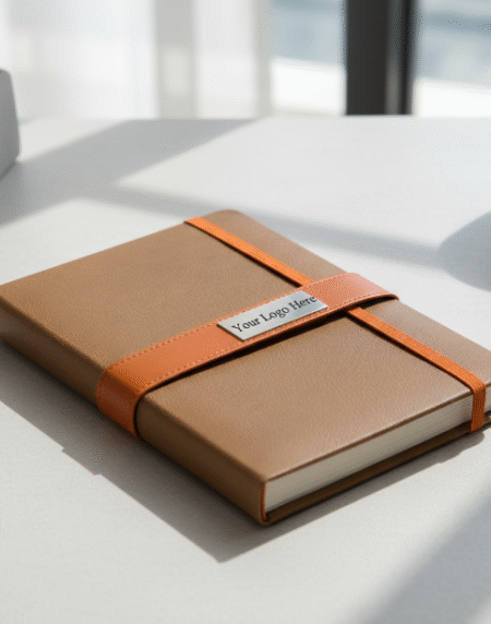 A contemporary A5 size notebook diary featuring an attractive design and a secure belt lock closure. Ideal for office use, travel, and corporate branding. Available in multiple attractive colors for bulk orders and easily customizable with your company logo via debossing or an engraved metal plate.